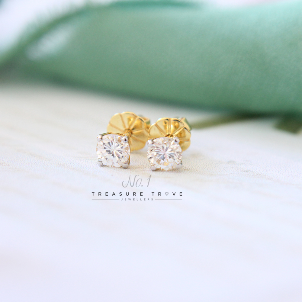A pair of 18ct yellow gold diamond single stone earrings. Two brilliant cut diamonds each weighing an estimated 0.21ct. Total diamond weight 0.43ct known. Colour estimated as I/J. Clarity estimated as SI. Mounted in 18ct yellow gold with 4 claw settings and post and flower design butterfly fittings. The earrings measure 3.65mm in diameter.