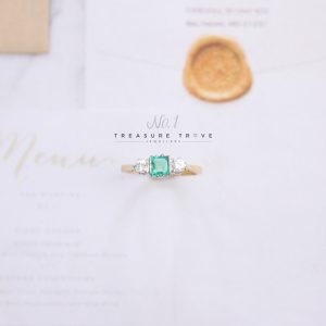 Vintage 18ct Emerald & Diamond 3 Stone Ring